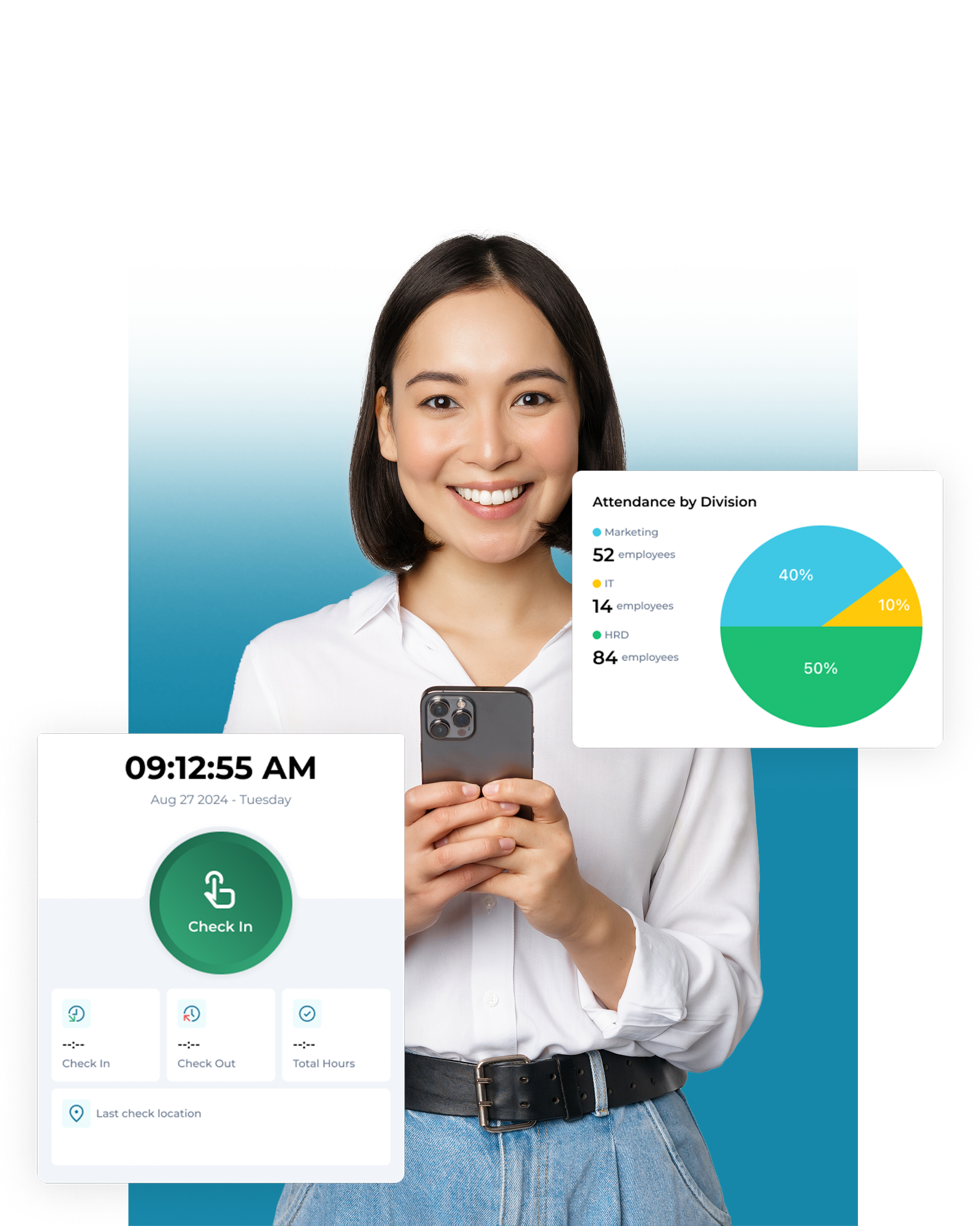 Face recognition and GPS tracking ensure every attendance record is accurate and verified, eliminating buddy punching.